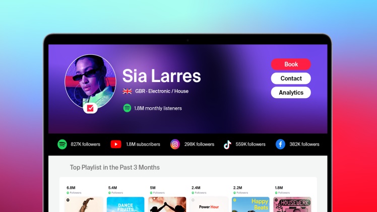 These artist websites are not just functional; they are beautifully crafted and automatically updated, ready to be shared at a moment’s notice. They encompass essential details like genre, base country, top songs, music videos, upcoming events, and audience breakdown—everything a music professional might need for talent screening.